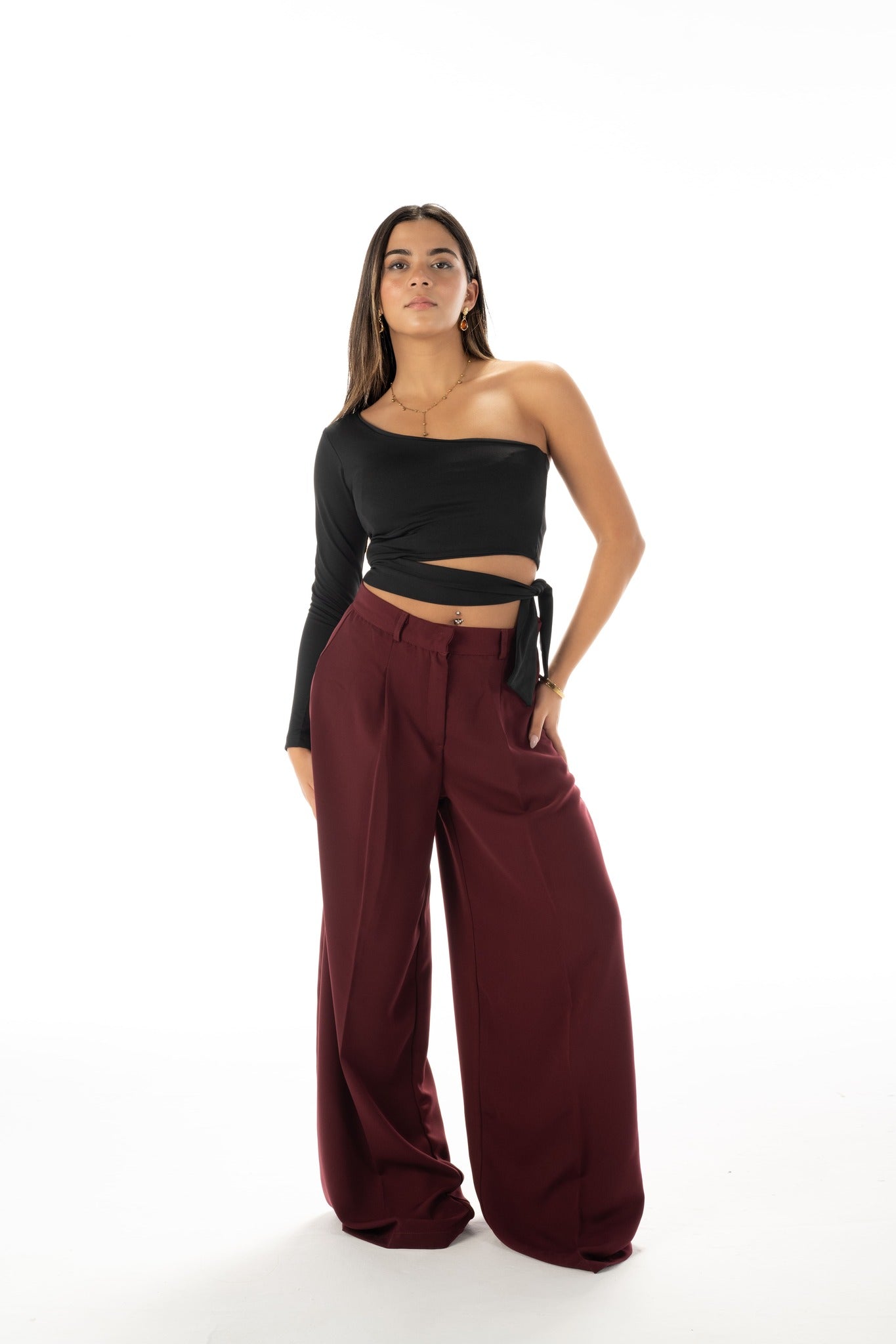 One shoulder ribbon top